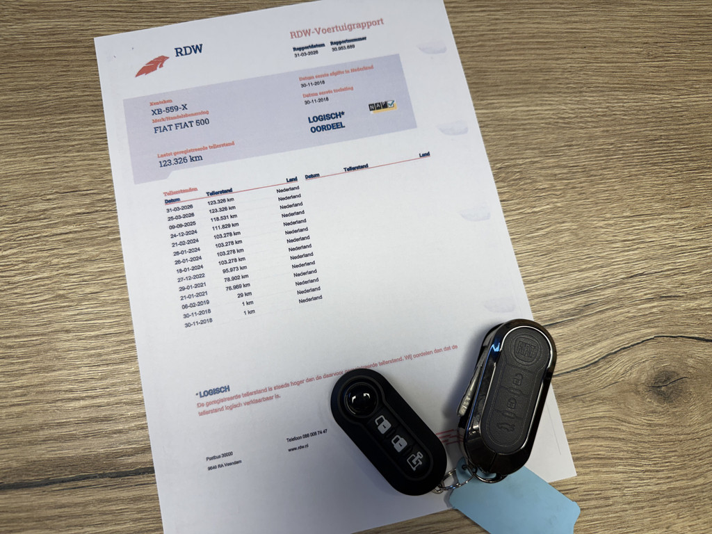Dit betreft een leuke Fiat 500 .09 TwinAir Turbo Sport met origineel 123.431 km (NAP) gereden. De onderhoudshistorie is aanwezig (boekje ingevuld + afgestempeld) en de laatste beurt is uitgevoerd bij 118.531 km. Verder is deze auto voorzien van een distributieketting en staat op 4 goede banden. Daarnaast wordt deze Fiat geleverd met een nieuwe APK.
