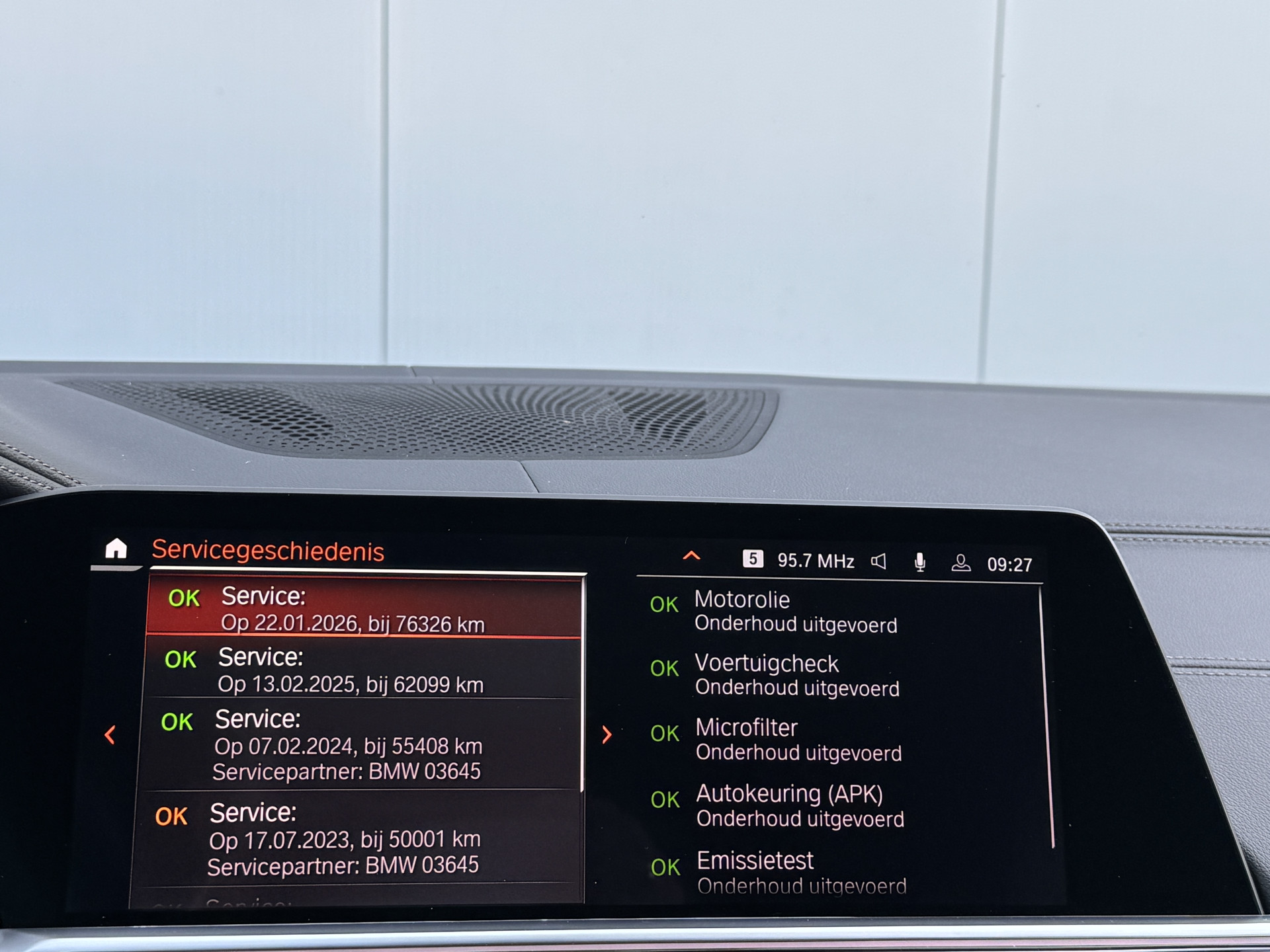 De onderhoudshistorie is aanwezig en de laatste beurt is uitgevoerd bij 76.326 km.