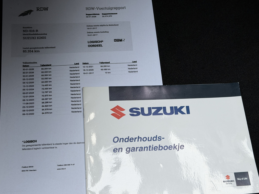 Dit betreft een nette Suzuki Ignis 1.2 Select Intro van de 1e eigenaar met origineel 85.419 km (NAP) gereden. Deze auto is dealer onderhouden en de laatste beurt is uitgevoerd bij 83.093 km. Verder staat deze Suzuki op 4 goede all season banden en is de APK geldig tot 19-1-2027. Tevens is deze auto voorzien van een distributieketting.